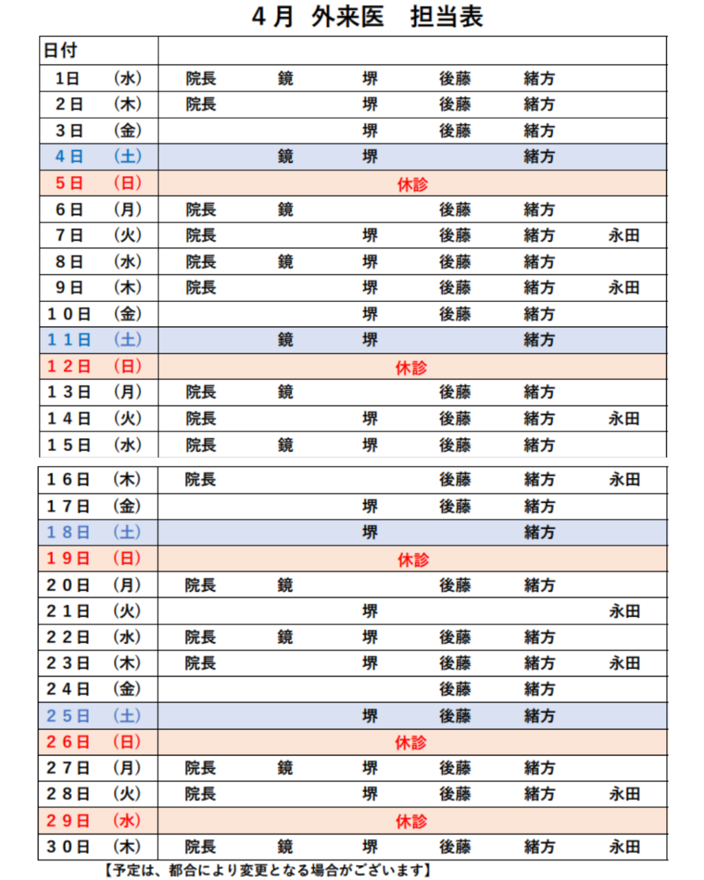 2026/03/30(月) 受付 NEW 4月の診療カレンダー こんにちは、ピュアデンタルクリニックです 4月の診療カレンダーをお知らせいたします❀ 新年度がスタートし、生活環境が変わる方も多い時期ですね お忙しい時期ではありますが、お口の健康管理もぜひ大切にお過ごしください✨ 気になることがございましたら、お気軽にお問い合わせください